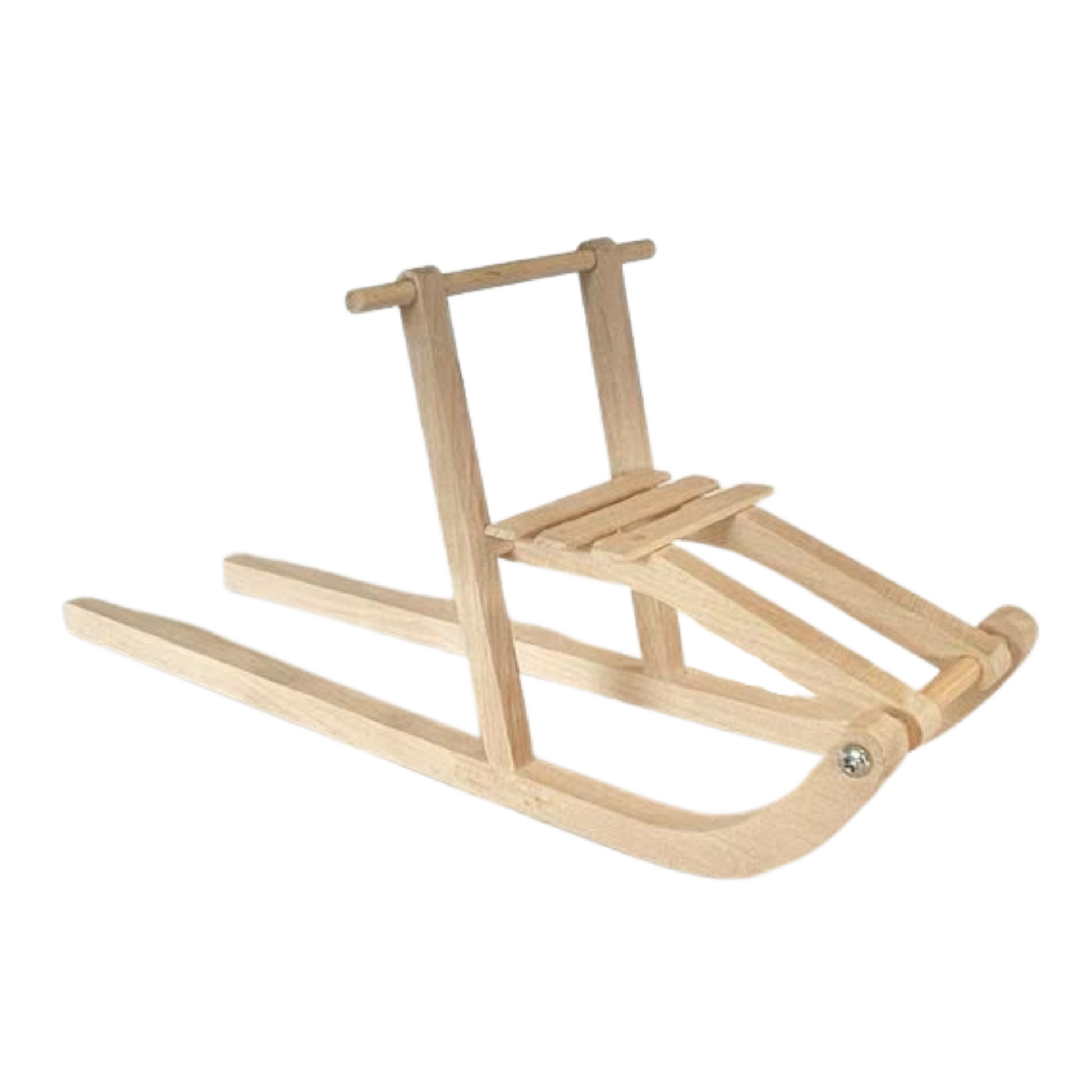 Sparken er laget i solid bjørk og har fine detaljer som gjør den både robust og dekorativ. Den er ideell til å plassere små nisser, julefigurer eller gaver på – og gir et koselig og personlig preg til julepynten.