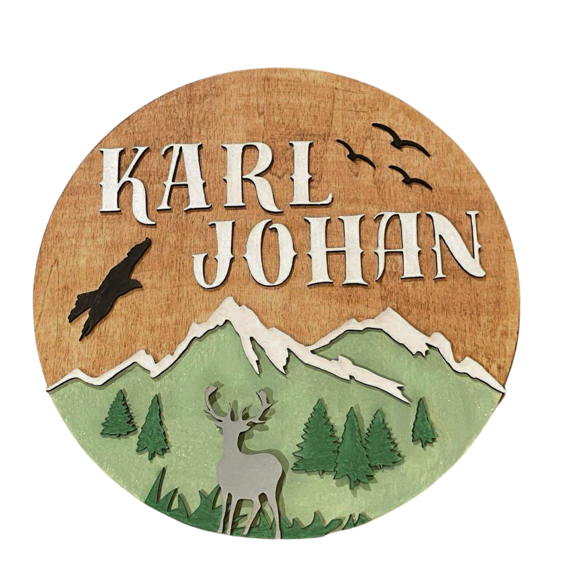 - Materiale: Kryssfiner, lasergravert og håndmalt